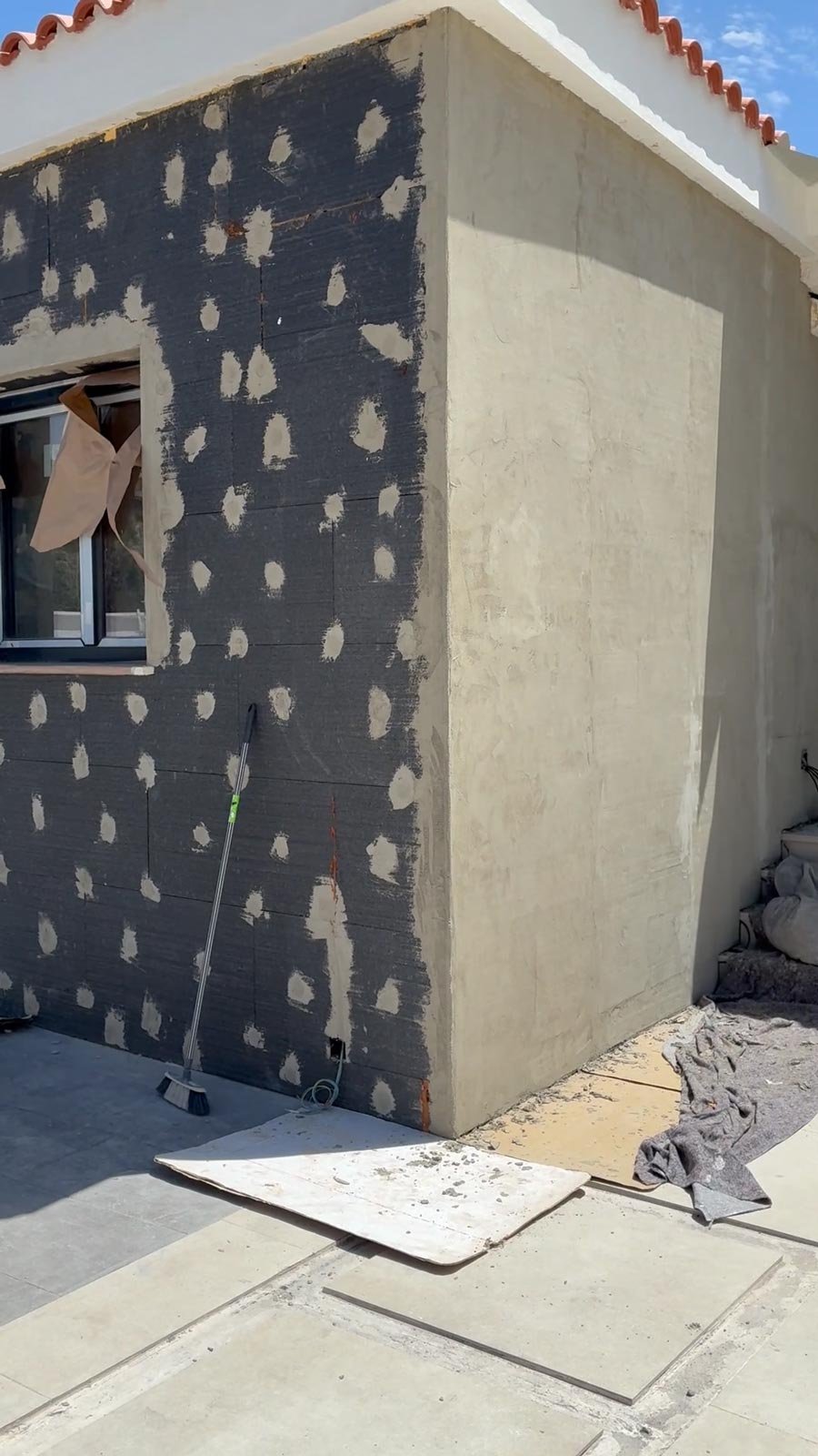 Consiste en fijar al muro paneles aislantes (por ejemplo, EPS, lana mineral, XPS o similares), reforzarlos con una capa de mortero y malla, y finalizar con un revestimiento exterior (acabado acrílico, mineral, silicona, etc.). El resultado es una fachada protegida y estéticamente renovada.